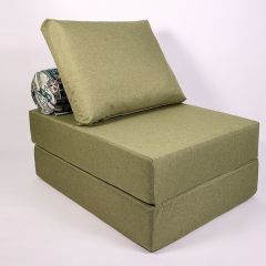 Описание: Изготовлен на основе поролона, чехлы съемные, матрасик на синтетическом волокне спрятан в валике, раскладывается в спальное место. Поставляется в упаковке из полиэтилена.